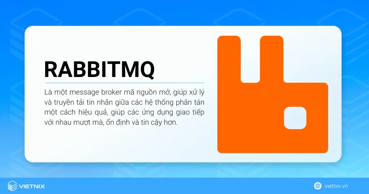 RabbitMQ là một message broker mã nguồn mở, giúp xử lý và truyền tải tin nhắn giữa các hệ thống phân tán một cách hiệu quả. Nhờ khả năng hỗ trợ nhiều giao thức nhắn tin như AMQP, MQTT, STOMP và HTTP, RabbitMQ giúp các ứng dụng giao tiếp với nhau mượt mà, ổn định và tin cậy hơn. Ngoài ra, RabbitMQ còn cho phép mở rộng linh hoạt thông qua hệ thống plugin phong phú, hỗ trợ tích hợp nhanh với các nền tảng khác mà không cần thay đổi cấu trúc hệ thống hiện có.