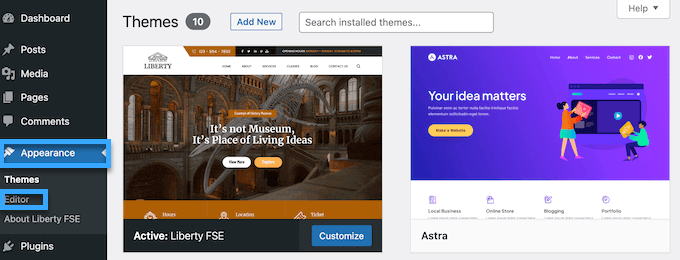 Để bắt đầu, hãy đi tới Appearance > Editor trong dashboard WordPress.