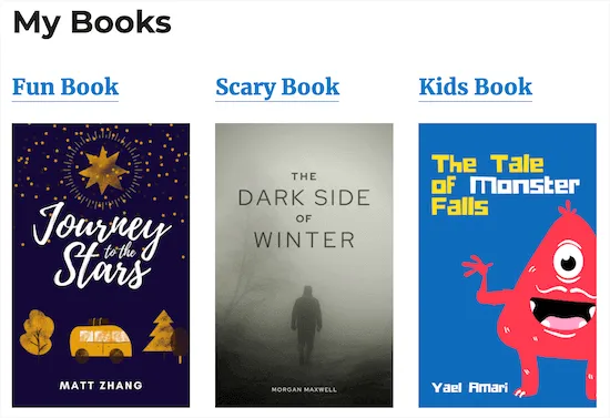 Khi đã thêm custom post type vào WordPress, chỉ cần truy cập page hoặc bài viết mà bạn muốn embed nội dung đó. Sau đó, bạn có thể chèn nội dung bằng cách thực hiện theo quy trình tương tự được mô tả ở trên. Đây là một trang có nội dung được embed từ nhiều bài viết, tất cả đều có loại bài viết tùy chỉnh ‘Book‘.