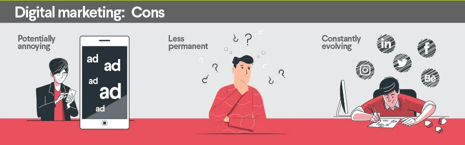 Các chiến lược Digital marketing như quảng cáo Google, banner, email quảng cáo hoặc quảng cáo trên mạng xã hội có thể mang tính tạm thời, khó có thể để lại ấn tượng sâu đậm và dễ dàng bị bỏ qua. Nếu đối tượng mục tiêu mà bạn nhắm đến tiếp tục lướt hoặc nhấp vào trang tiếp theo, quảng cáo của bạn sẽ biến mất khỏi màn hình của họ.