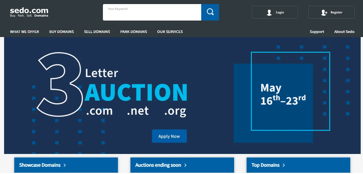 Sedo là nền tảng mua bán tên miền lớn, cung cấp dịch vụ định giá dựa trên các giao dịch thực tế. Đây là công cụ phù hợp cho ai muốn tham gia thị trường quốc tế.