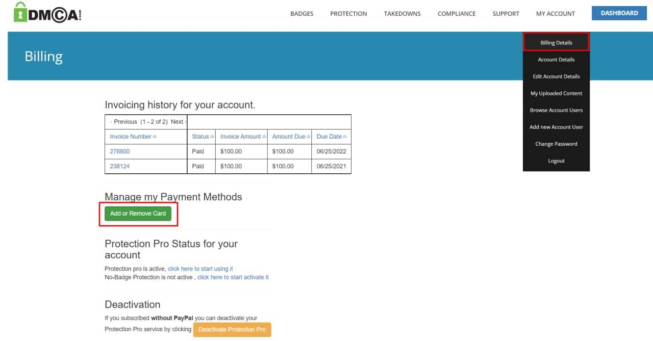 Để hủy thanh toán trên DMCA, bạn làm như hình dưới:
