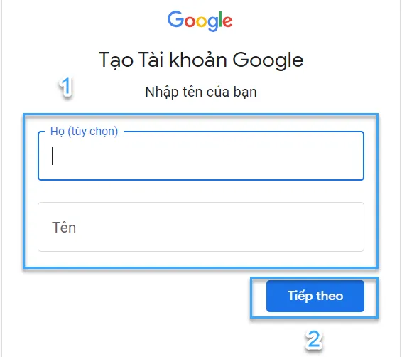 Bước 3: Bạn nhập Họ và Tên, sau đó chọn Tiếp theo.