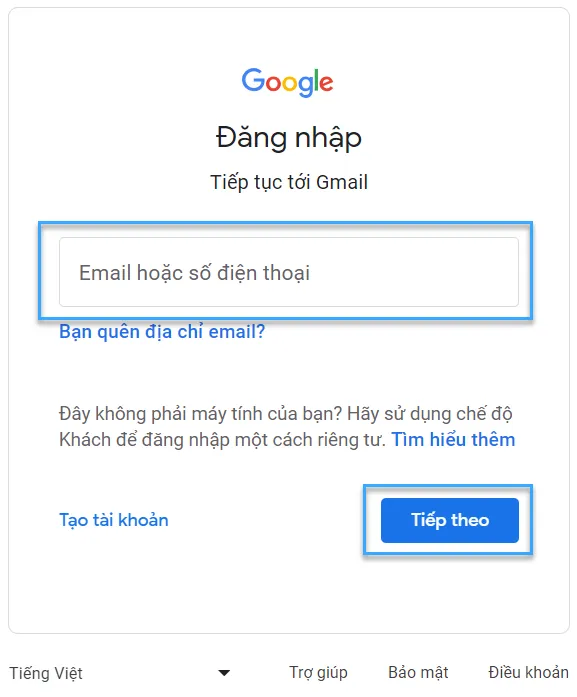 Bước 2: Bạn nhập địa chỉ Email hoặc số điện thoại bạn đã đăng ký và chọn Tiếp theo.