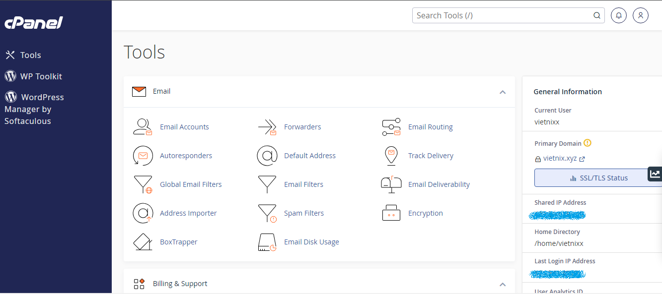 - Thay thế IP bằng IP server hosting của bạn, ví dụ: https://103.200.22.212:2083. Bạn có thể xem email đăng ký dịch vụ hosting để biết địa chỉ IP này.