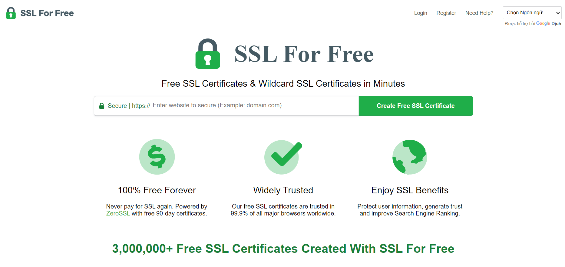 SSL For Free là dịch vụ dựa trên nền tảng Let’s Encrypt nhưng có giao diện thân thiện, dễ sử dụng hơn, đặc biệt phù hợp với những người không rành về kỹ thuật. Dịch vụ này hướng dẫn từng bước xác minh và cài đặt chứng chỉ một cách chi tiết, giúp bạn dễ dàng tạo và tải về chứng chỉ SSL cho website của mình. SSL For Free cũng hỗ trợ gia hạn tự động, đảm bảo website luôn được bảo vệ mà không cần thao tác thủ công phức tạp.