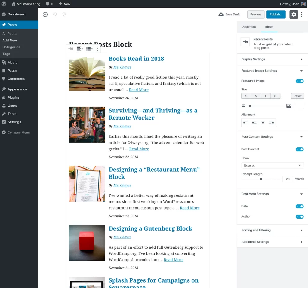 Widgets sẽ có 3 loại rất hữu ích thuộc bài viết mới nhất (latest posts). Tuy vậy, các category hay tùy biến shortcodes hầu như không khả dụng đối với những khối Gutenberg.
