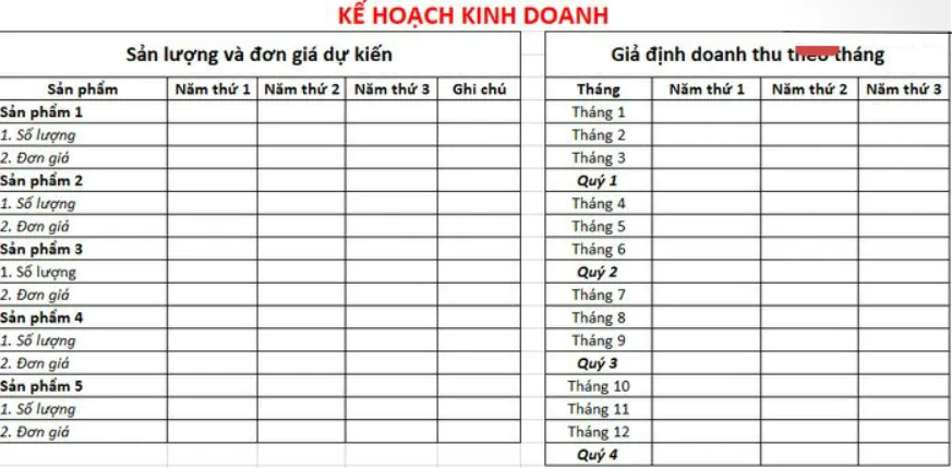 3. Mẫu lập kế hoạch kinh doanh theo sản lượng và doanh thu