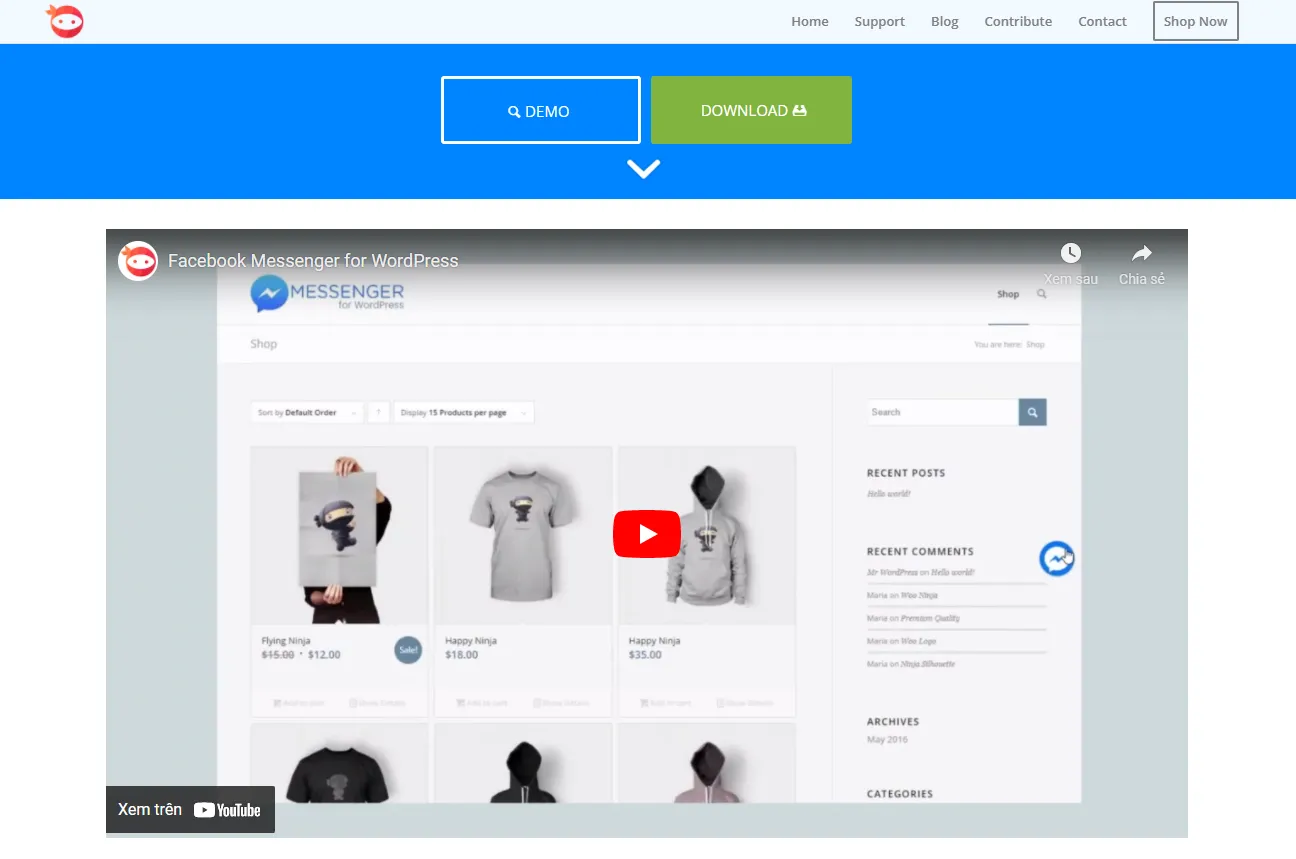 Việc kết nối với người dùng trên Facebook là rất dễ dàng với plugin Facebook Messenger. Về cơ bản, đây là một plugin cao cấp dành cho việc nhắn tin, đặc biệt dành cho các trang web dựa trên nền tảng WordPress. Bạn sẽ không bao giờ lo sẽ bỏ lỡ bất kỳ khách hàng tiềm năng nào mà thậm chí bạn có thể nhận được tin nhắn của người dùng và lưu thông tin chi tiết của họ.