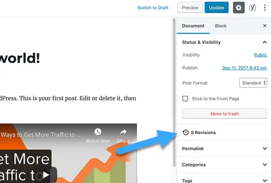 Khi viết một bài đăng, có thể bạn hối tiếc vì đã xóa đi một nội dung đã viết trước đó. Màn hình revisions cho phép bạn quay trở lại quá khứ và hoàn tác các thay đổi đó.