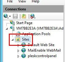 - Mở rộng phần server ở phía bên trái màn hình, chọn tiếp vào [Tên server] sau đó chọn Sites tiếp tục chọn Default Web Site.
