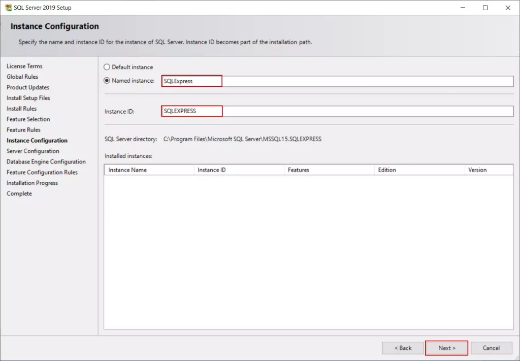 Bước 9: Với mục Instance Configuration, bạn sẽ đặt tên cho Instance với điều kiện chữ không dấu, không có khoảng trắng rồi nhấn Next.