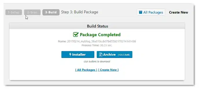 Khi package được tạo thành công, bạn cần tải về hai file Installer và Archive về máy tính của mình.