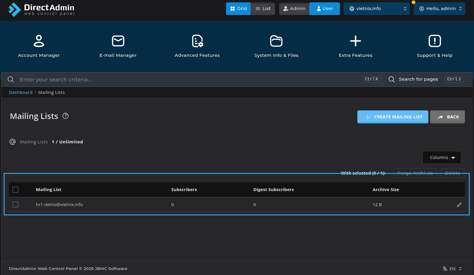 3 bước tạo Mailing List trên DirectAdmin chi tiết