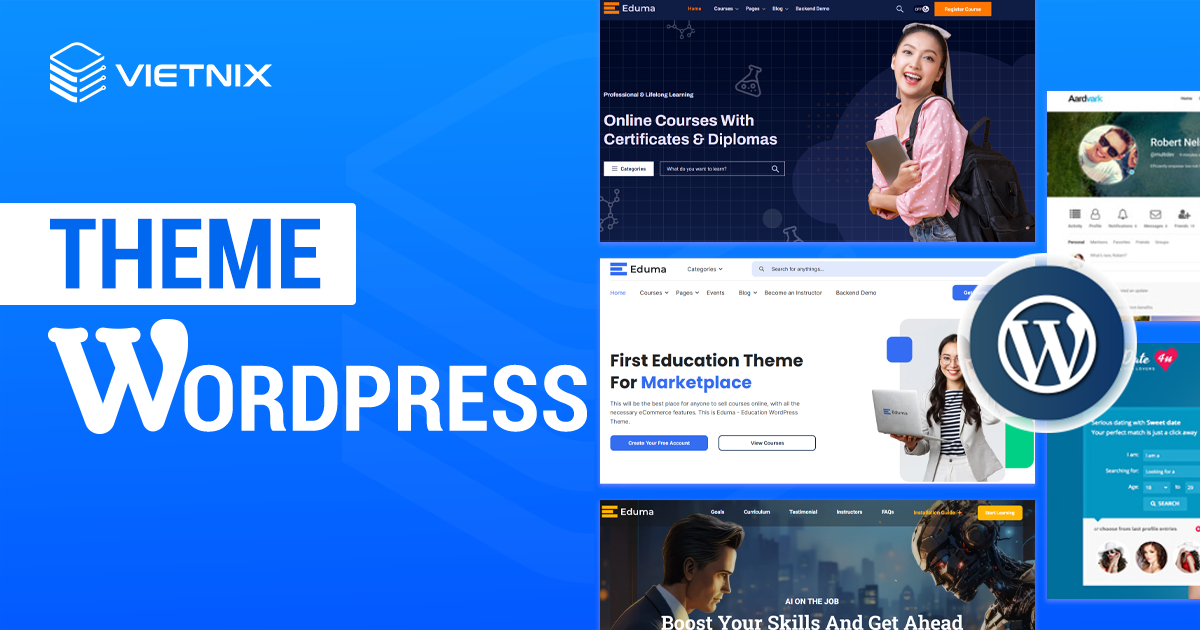 Nếu bạn vẫn chưa chọn được template/theme website ưng ý hoặc đang tìm kiếm các mẫu theme miễn phí thì hãy tham khảo sử dụng dịch vụ WordPress Hosting tại Vietnix. Dịch vụ web hosting này không chỉ cung cấp hơn 500 mẫu theme bản quyền miễn phí, đa dạng theo từng lĩnh vực như sức khỏe, giáo dục, công nghệ, thời trang… mà còn giúp bạn dễ dàng tùy chỉnh và cài đặt theme chỉ với một cú click. Tất cả các mẫu theme đều được tối ưu hóa cho đa thiết bị, mang lại trải nghiệm người dùng mượt mà và ấn tượng.